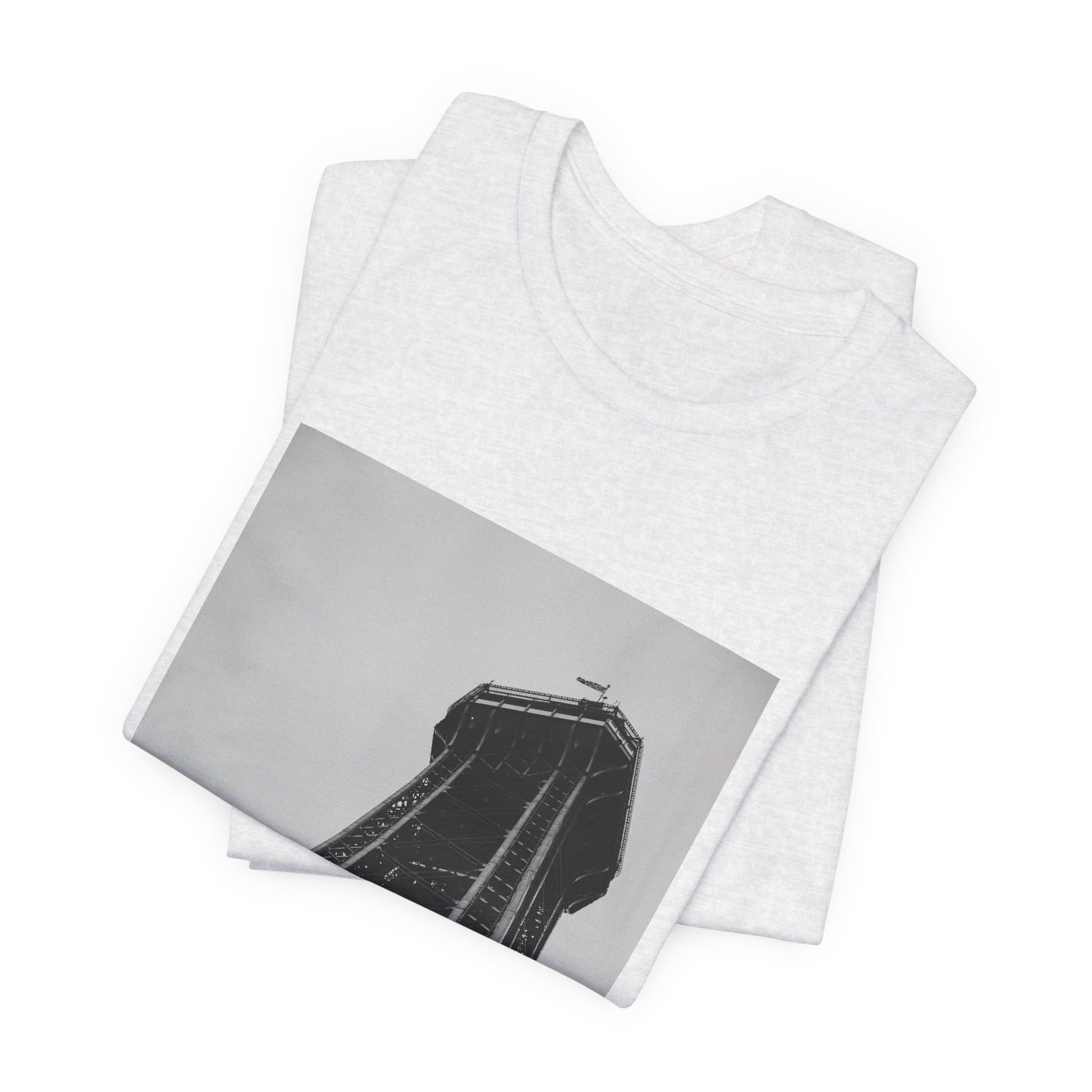 Embrace the timeless allure of Blackpool Tower with this classic unisex jersey short sleeve tee, featuring a striking image of the landmark. Soft cotton and quality print make users fall in love with it over and over again. These t-shirts have ribbed knit collars to bolster shaping. The shoulders are tapered for a better fit over time. Dual side seams hold the garment's shape for longer.