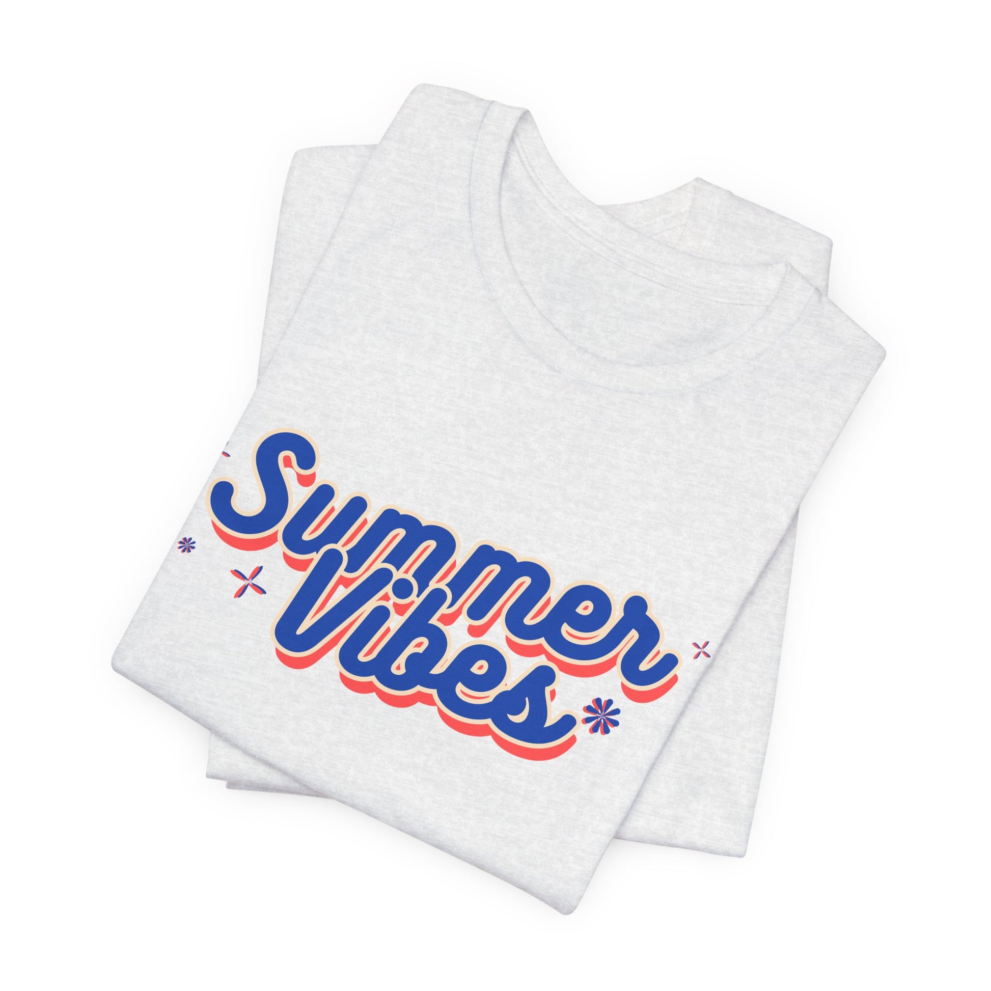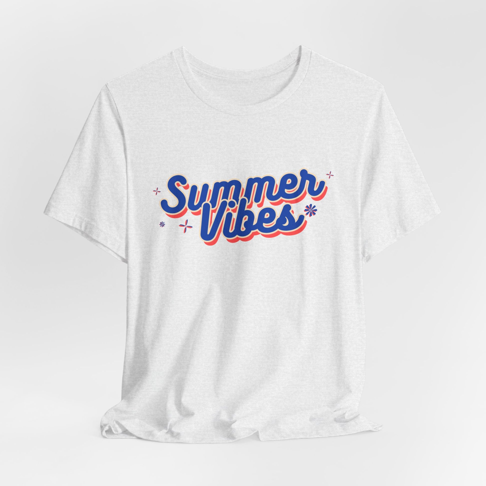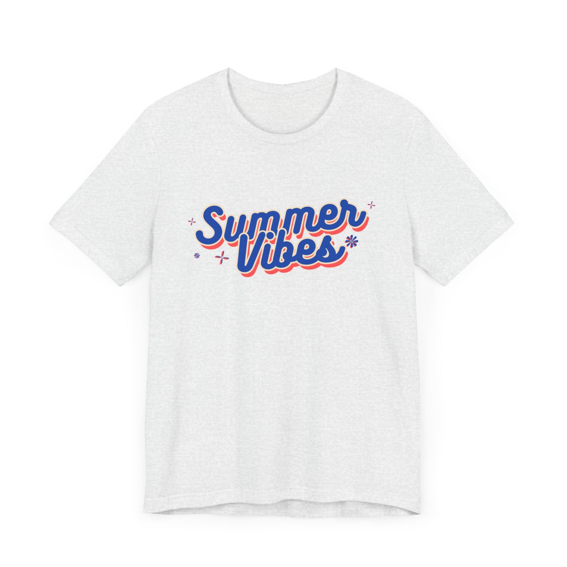 Embrace the essence of summer with this classic unisex jersey short sleeve tee adorned with 'Summer Vibes'. Soft cotton and quality print make users fall in love with it over and over again. These t-shirts have ribbed knit collars to bolster shaping. The shoulders are tapered for a better fit over time. Dual side seams hold the garment's shape for longer.