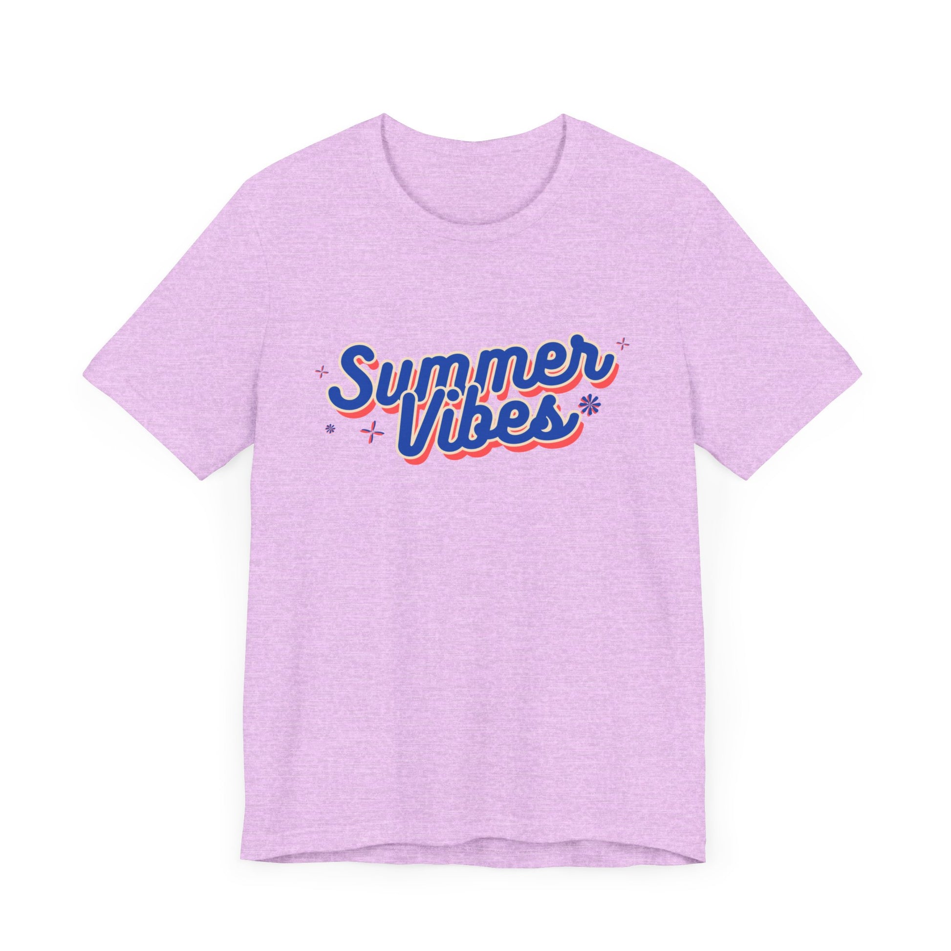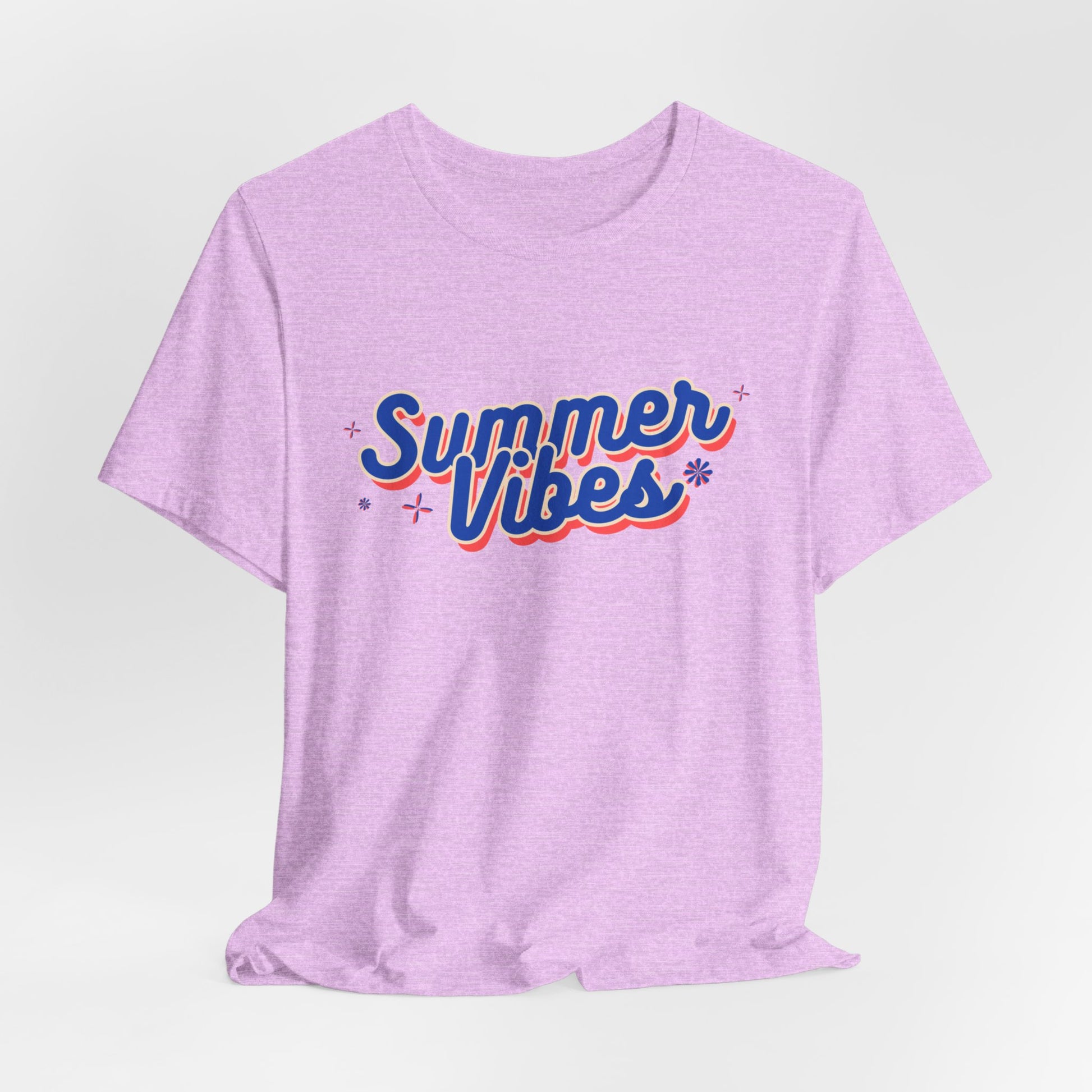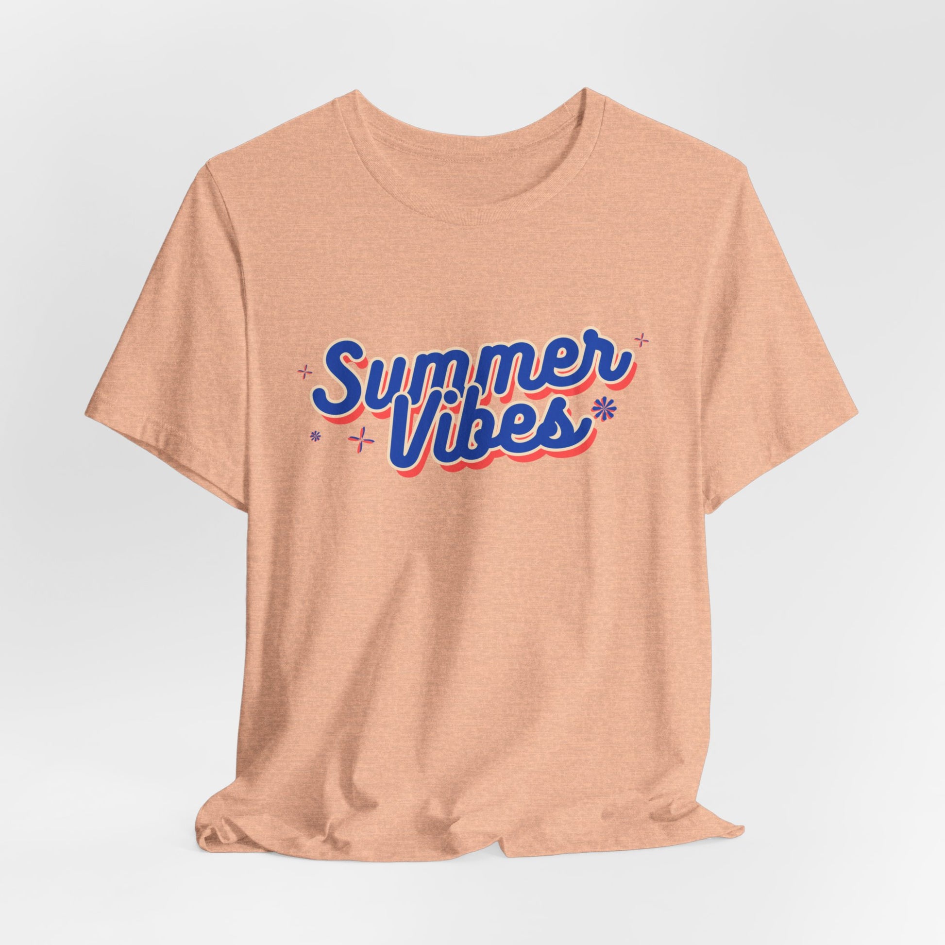 Embrace the essence of summer with this classic unisex jersey short sleeve tee adorned with 'Summer Vibes'. Soft cotton and quality print make users fall in love with it over and over again. These t-shirts have ribbed knit collars to bolster shaping. The shoulders are tapered for a better fit over time. Dual side seams hold the garment's shape for longer.